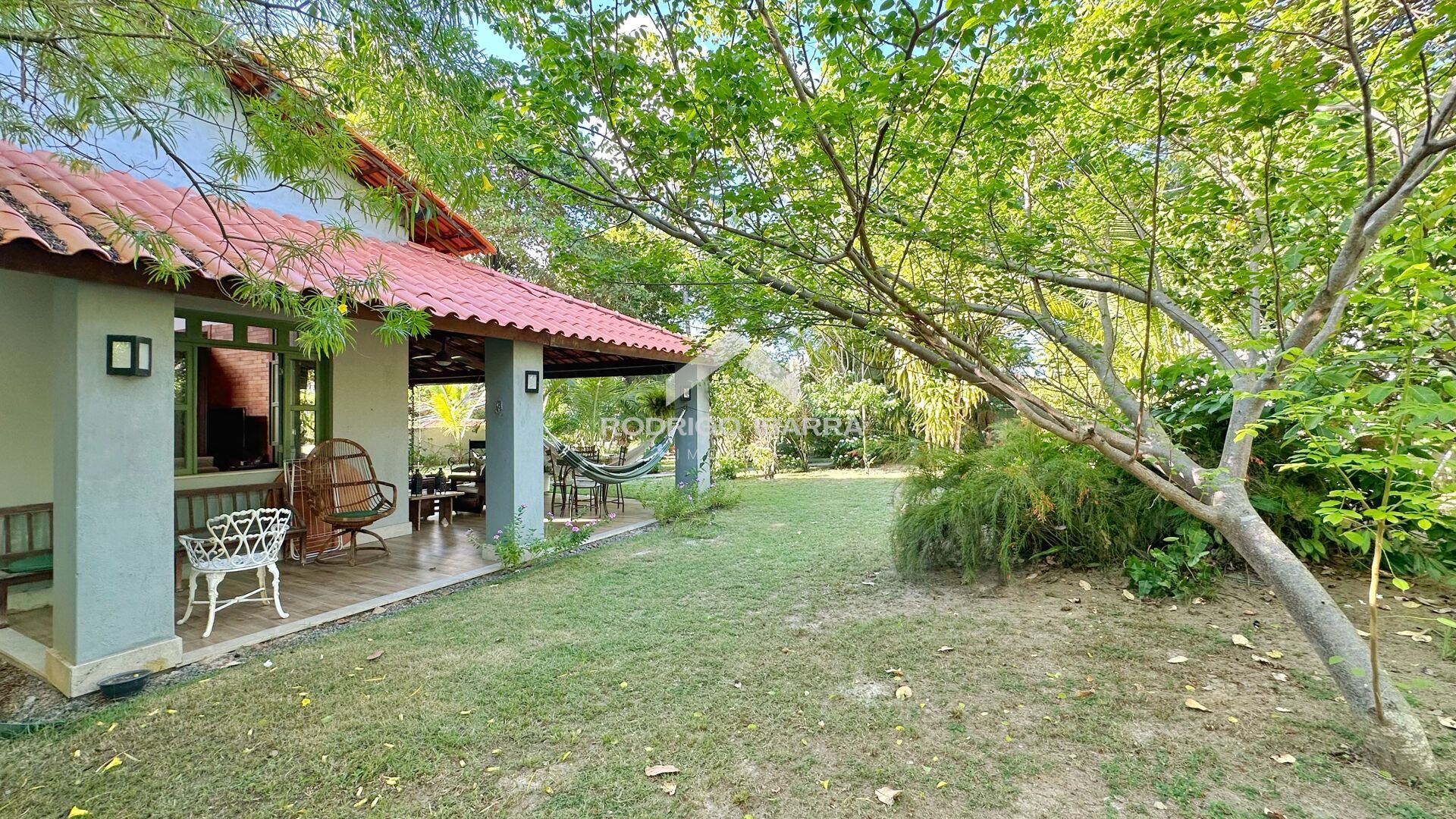 A varanda ampla se conecta de forma inteligente à cozinha e à área da churrasqueira, criando um espaço ideal para receber amigos e curtir bons momentos em família. No jardim, o destaque é um belíssimo cajueiro frutífero, ornamentado por uma antiga jiboia, compondo um ambiente externo único e acolhedor.